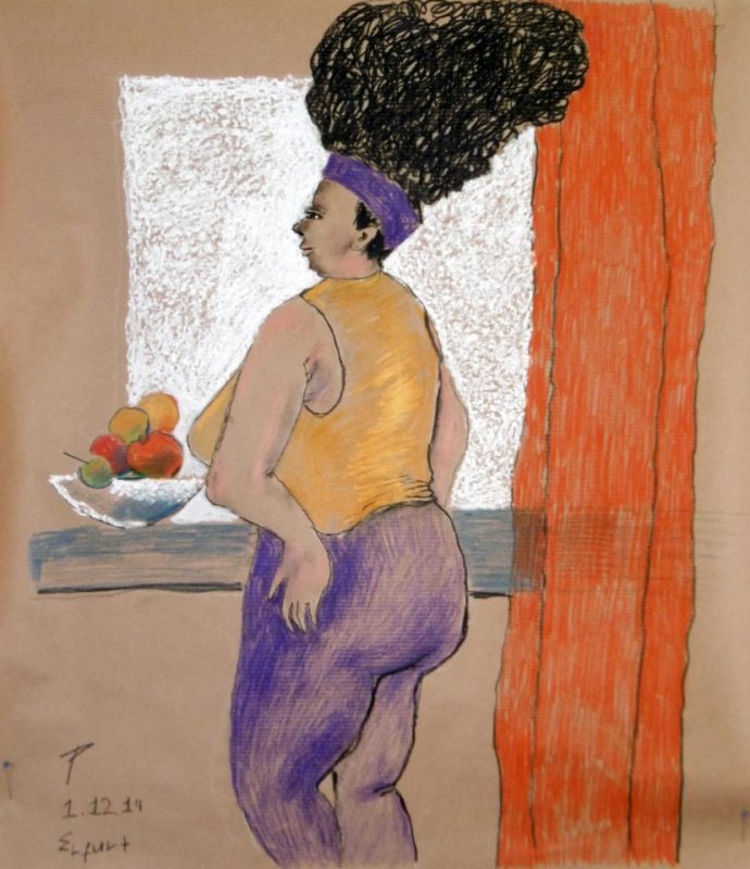 Like French artist Paul Gauguin was inspired by locals when he entered Polynesia, “NOA” is a range of drawings motivated by contrast to the surroundings (both by color and emotions) foreign young women who came to Germany to study. Globalization process enabled our diverse experiences, and this artistic project aims to emphasize that today we have a physical opportunity to know, even not travelling far, new cultures enriching our life and expanding our worldview.