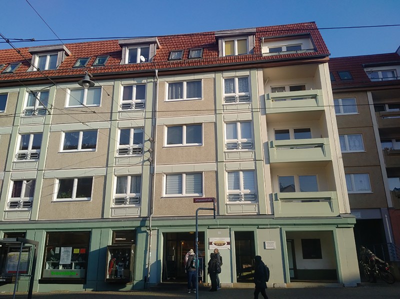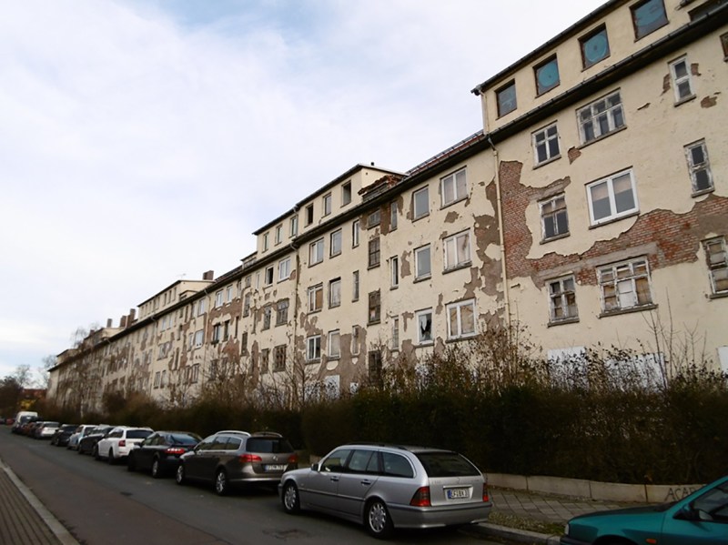 Residential blocks of the 1920s – Feldstraße 37–45 and Stollbergstraße 52 – 53 (Ilversgehofen) – registered as cultural Heritage – initially served as social housing with studio apartments. Refers to the municipal property (KOWO) and is waiting the refurbishment. Some units are already reconstructed and dwelled. Жилые кварталы 1920-х годов – Feldstraße 37–45 и Stollbergstraße 52–53 (Ilversgehofen) – зарегистрированные как культурное наследие – первоначально служили социальным жильем со студиями. Относится к коммунальной собственности (KOWO) и ожидает ремонта. Некоторые блоки уже реконструированы и заселены.